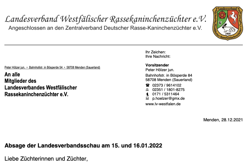 Weiterlesen...Die 79. Landesverbandsschau Westfalen musste leider abgesagt werden.