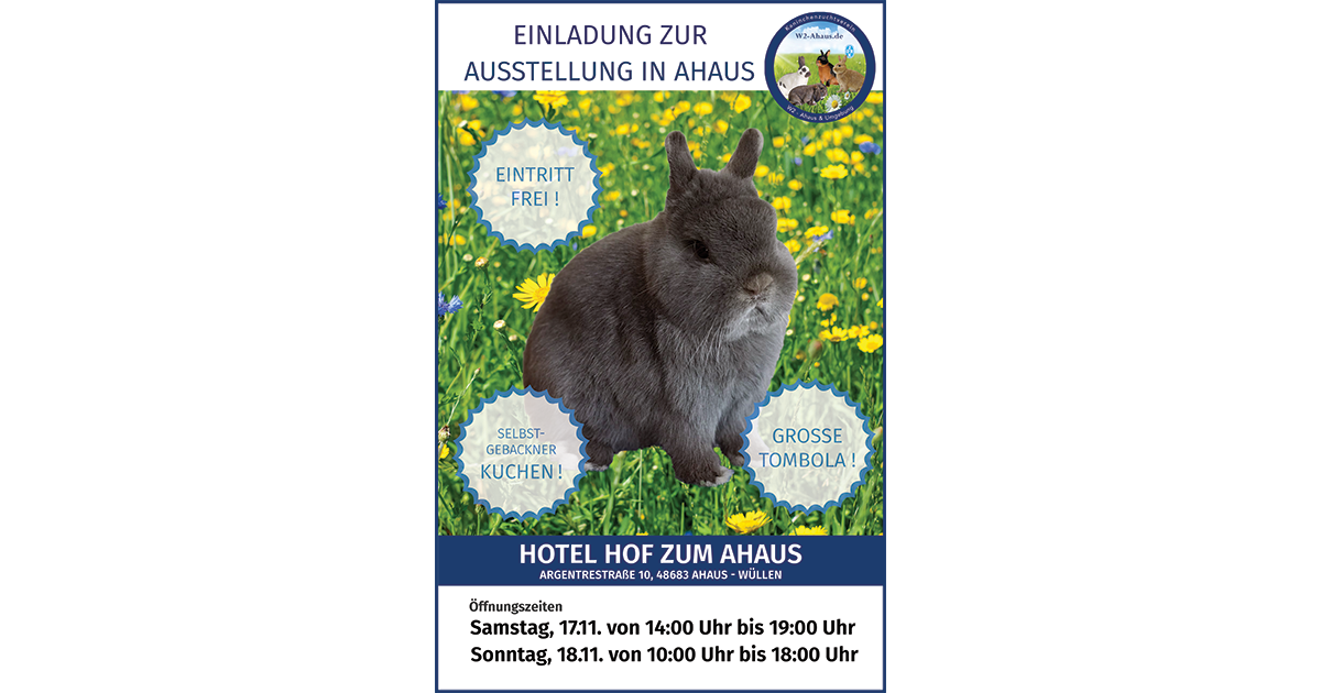 Am Sonntag, den 7. April nehmen wir als Kaninchenzuchtverein Ahaus und Umgebung wieder am jährlich statfindenen Ostermarkt in der Ahauser Innenstadt teil. Unser Stand befindet sich in der Nähe des Mahnmales an der St....