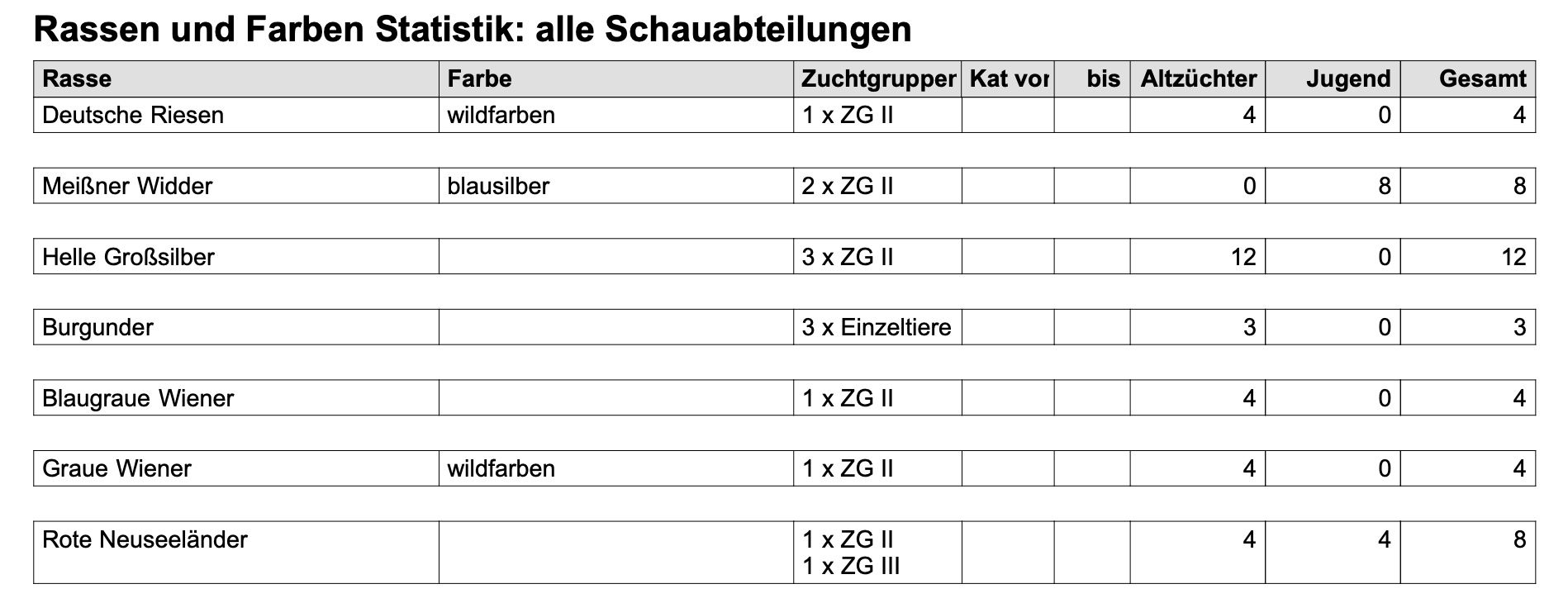 Als weiteren Service zu unserer Jubiläums-Kreisschau stellen wir Euch gerne die Rassen- und Farbenstatistik zur Verfügung.
