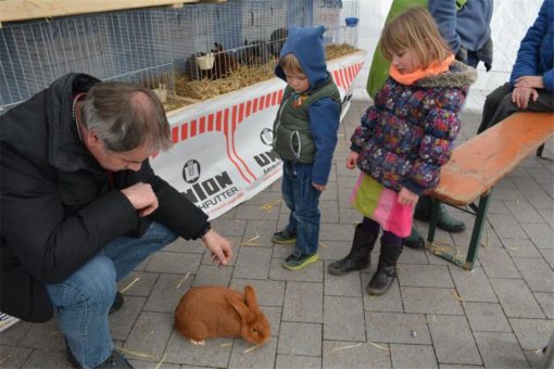 An unserem Stand direkt an der Kirche präsentieren wir ca. 20 Kaninchen aus unserem Verein. Dazu gehört auch eine Häsin mit ihren ca. 6 Wochen alten Jungtieren.